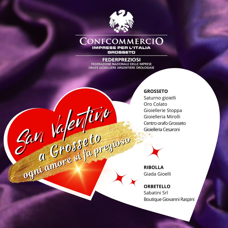 “San Valentino, a Grosseto ogni amore si fa prezioso” è il titolo dell’iniziativa dell’associazione che, in collaborazione con Infinito Viaggi e Sala Eden, che ha già preso il via e avrà il suo momento clou, ovviamente, la sera del 14 febbraio.