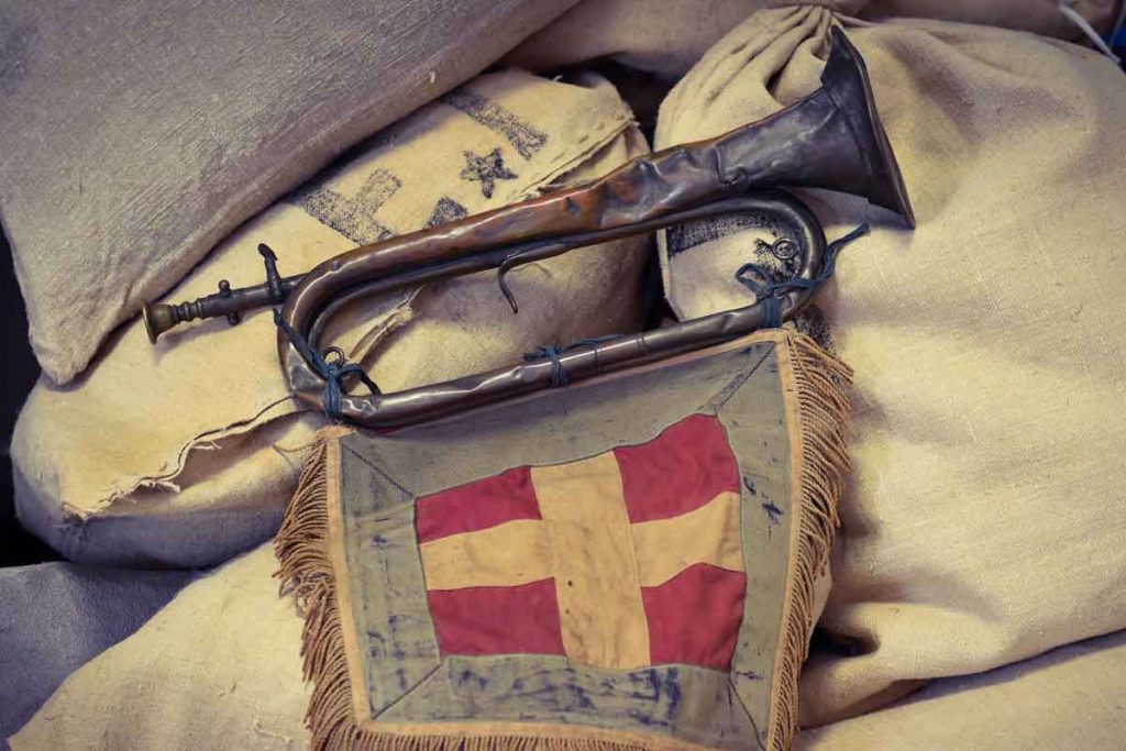 La parte dedicata al primo conflitto mondiale comprende la tromba che suonò la carica a San Foca nel 1918, sciabole ed elmi di ufficiali che parteciparono agli eventi bellici. Un’intera sala è dedicata alla seconda guerra mondiale, con uniformi, fotografie, ordini e trascrizioni di messaggi in originale, bandiere e sciabole sovietiche, documenti propagandistici in cirillico, carte topografiche tedesche. E poi lo spazio dedicato alla memoria di Albino, il cavallo reduce della carica di Isbunschenschij che è custodito, imbalsamato, in una fedele riproduzione della scuderia dove fu ospitato fino alla sua morte nel 1960.