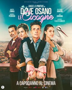 Dove osano le cicogne (Ita, 2025, commedia, durata 105 minuti). Regia di Fausto Brizzi. Attori: Angelo Pintus, Marta Zoboli, Beatrice Arnera, Andrea Perroni, Tullio Solenghi, Maria Amelia Monti.
