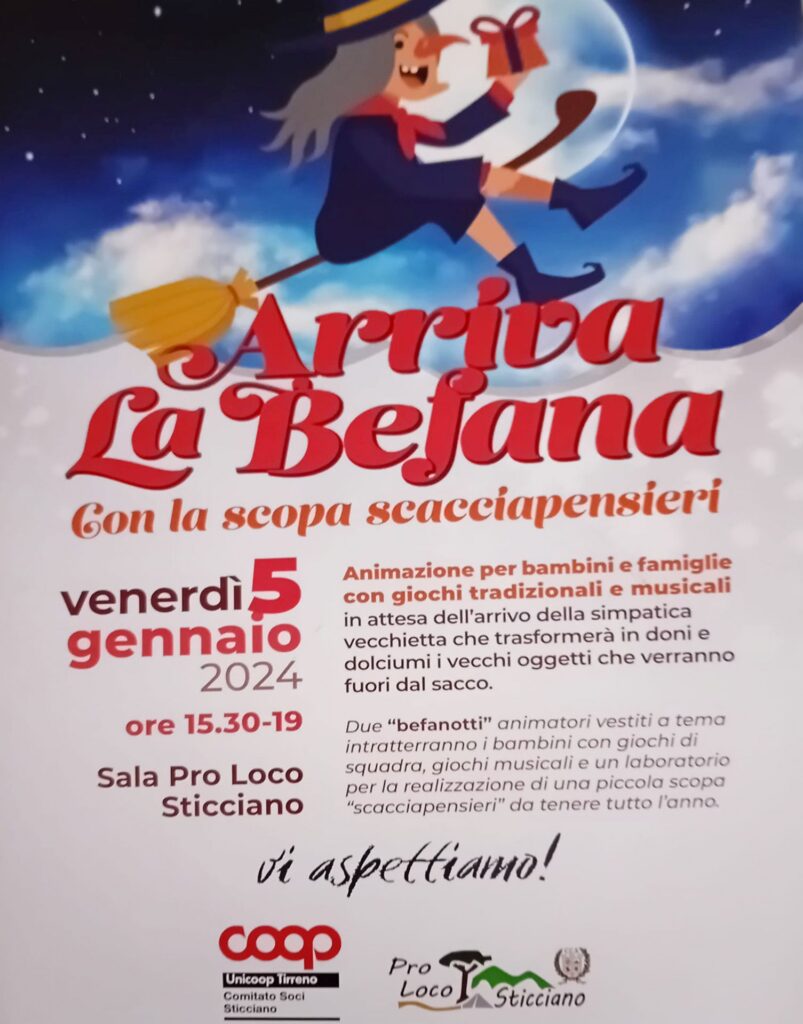 A Sticciano scalo, venerdì 5 gennaio, la Befana fa tappa alla struttura polivalente di Sticciano Scalo.