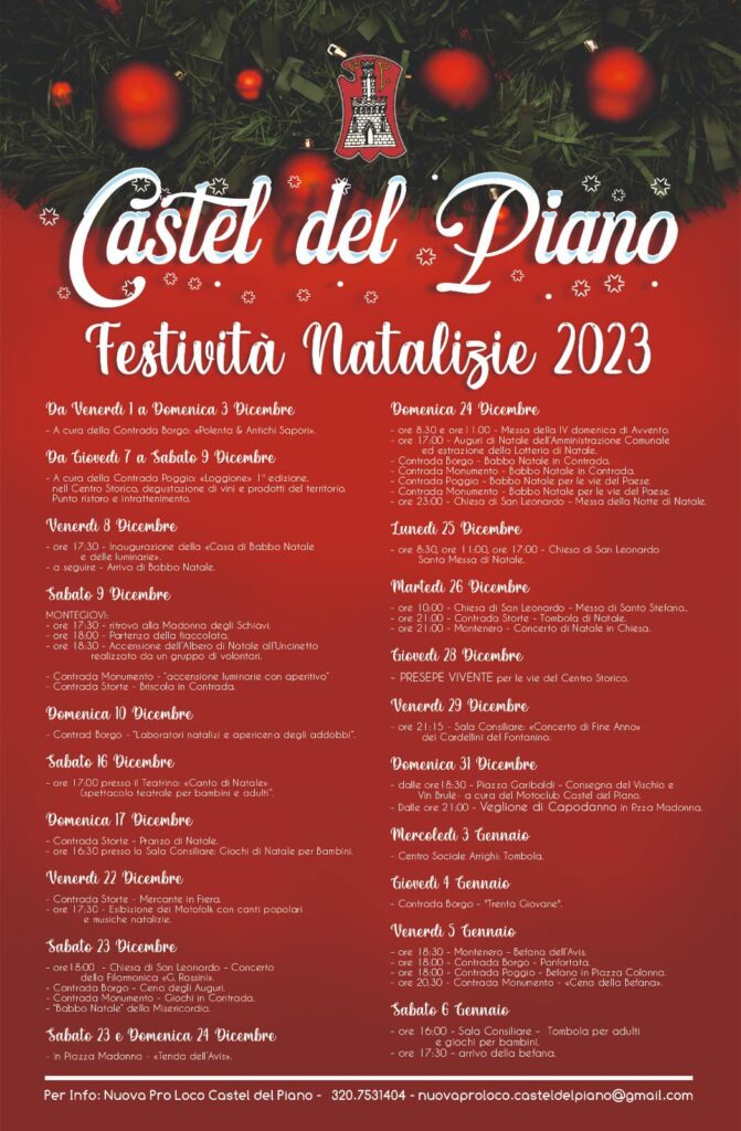 Venerdì 5 gennaio la Befana dell’Avis farà tappa alle 18.30 a Montemerano. In festa anche le contrade, la contada Borgo alle 18 avvierà una panfortata. La contrada Poggio, sempre alle 18, porterà le Befane in piazza Colonna. Alle 20, la contrada Monumento ha in programma la “Cena della Befana”.