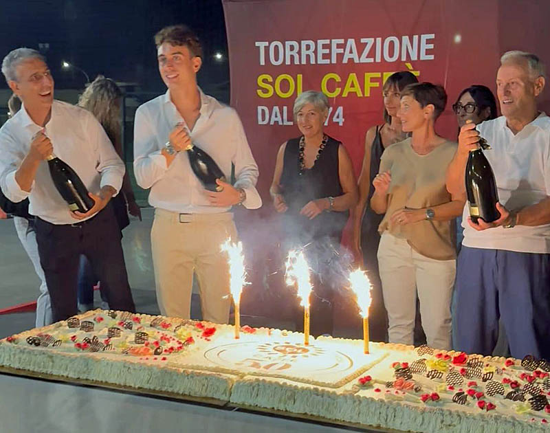 Abbracci, baci, risate, complimenti e commemorazioni, celebrano il successo di un’azienda familiare, fiore all’occhiello della nostra città. Un’azienda che sa che i suoi traguardi sono frutto del lavoro di tutto il suo team e della fedeltà dei propri clienti: «Vogliamo festeggiare il compleanno di Sol Caffè – ci dice Paola – non per autocelebrarci ma per condividere questa enorme gioia con tutti coloro che negli anni ci sono stati al fianco».