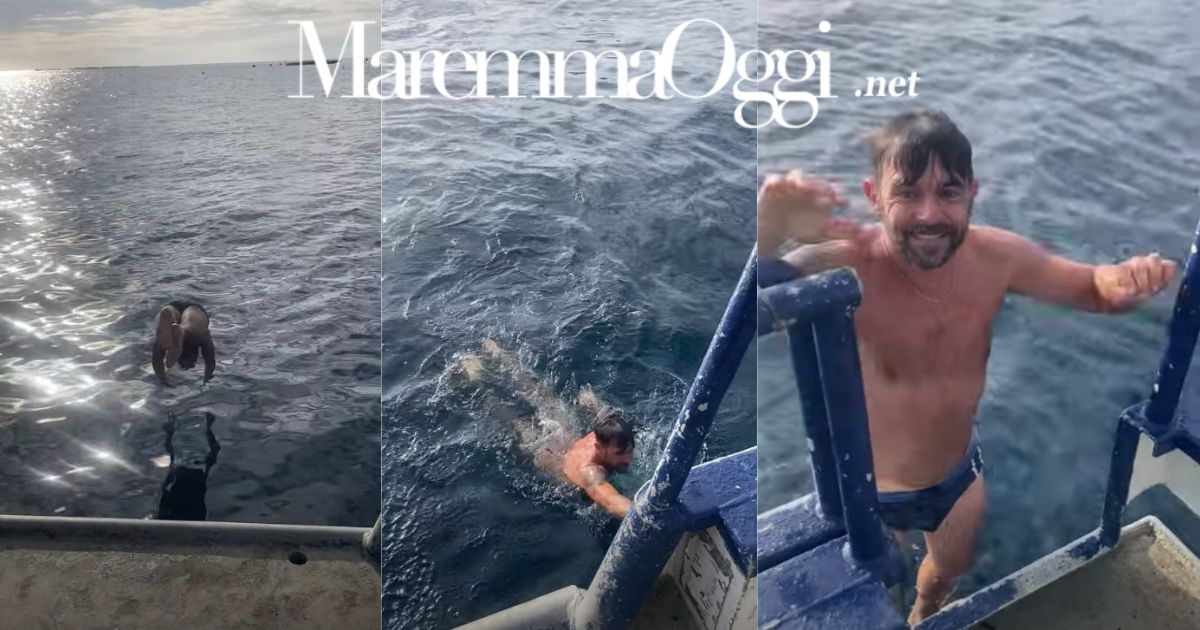 Bagno in mare al largo di Follonica, Pazzaglia sfida il freddo