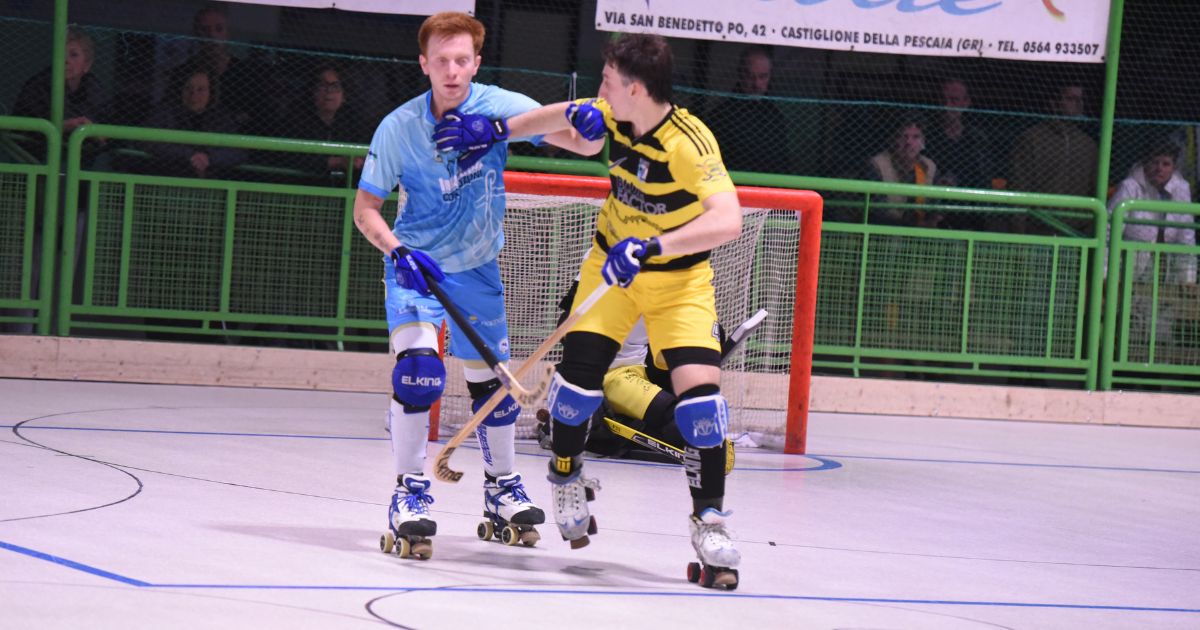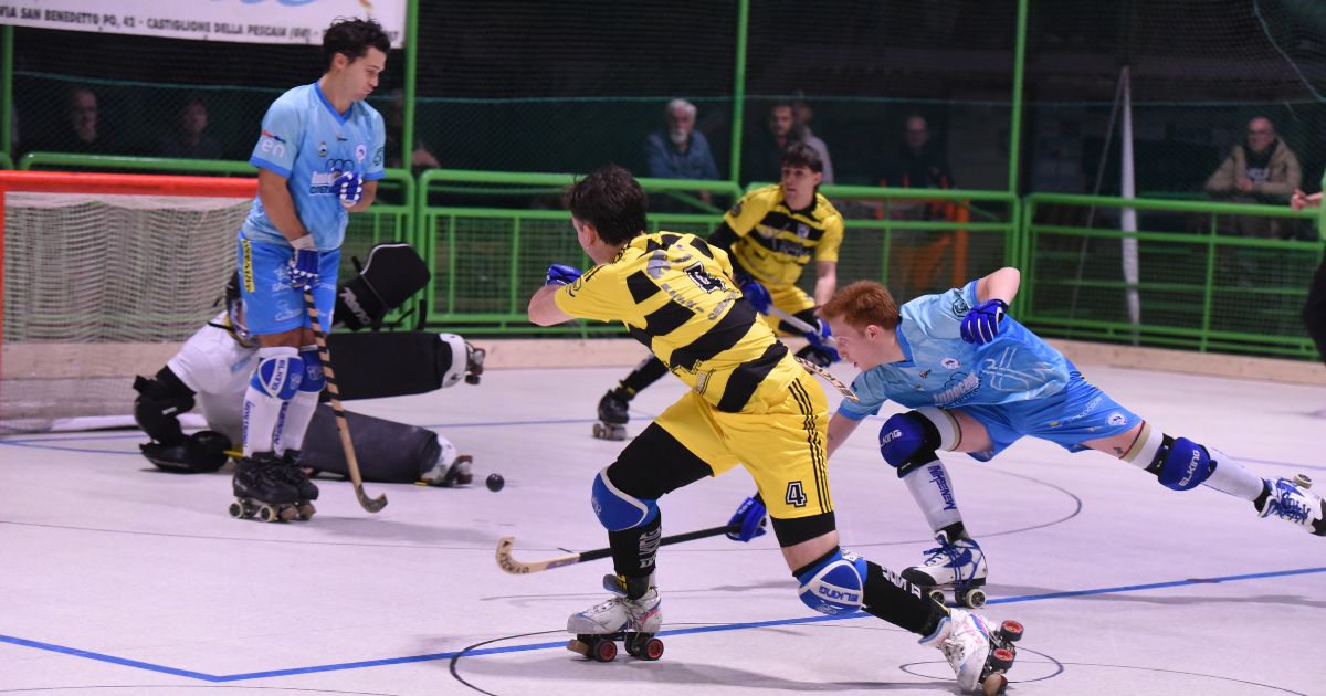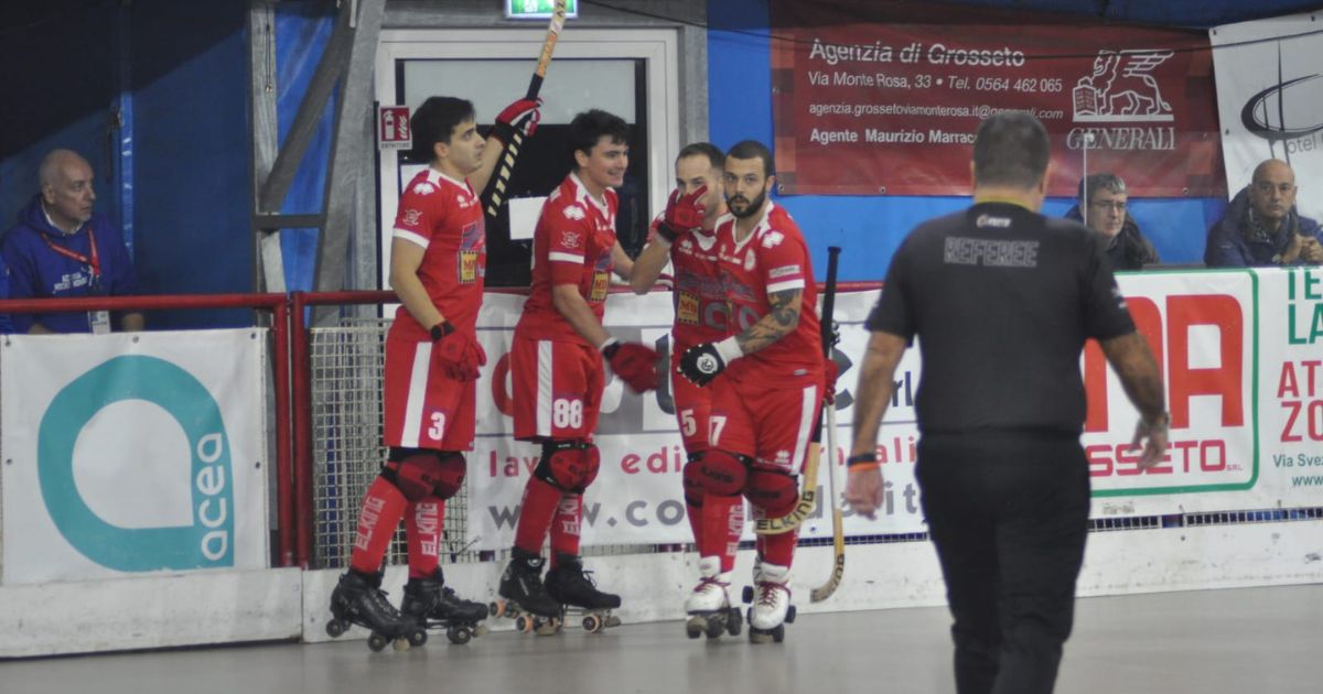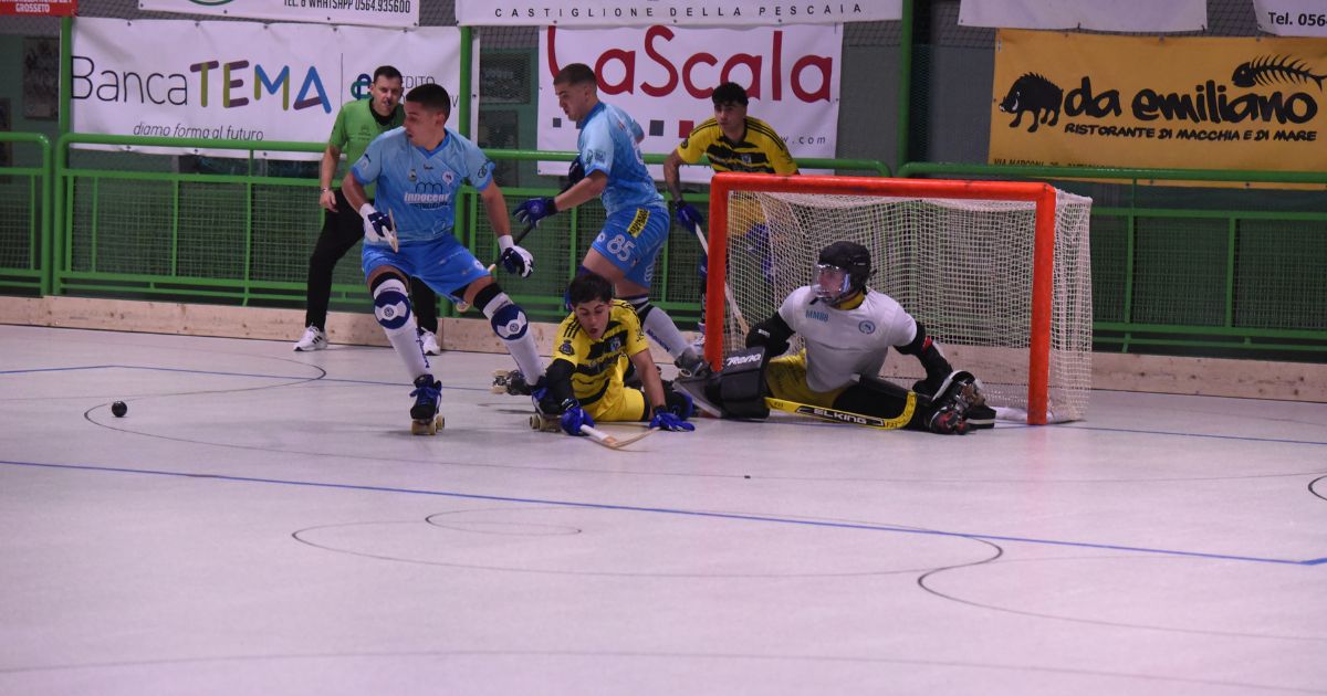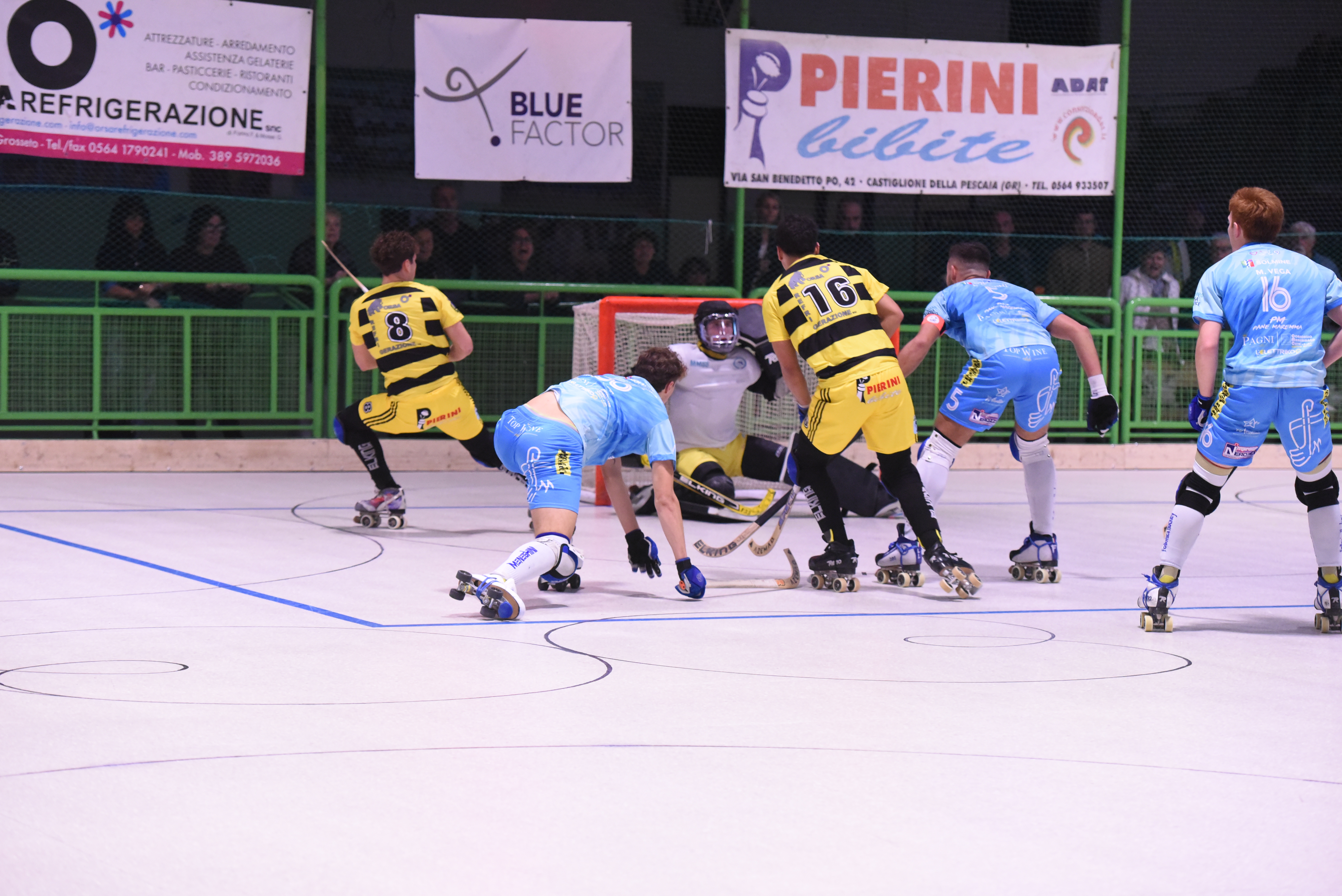 GROSSETO. Clamorosa vittoria dell’Innocenti Follonica, che dopo aver subito la Blue Factor nel primo tempo, chiuso 5-2 avanti dai biancocelesti di Massimo Bracali, ribalta tutto nella ripresa per vincere 8-5. Importante successo del Cp Grosseto che sulla pista Mario Parri supera 3-2 l’Azzurra Novara.
