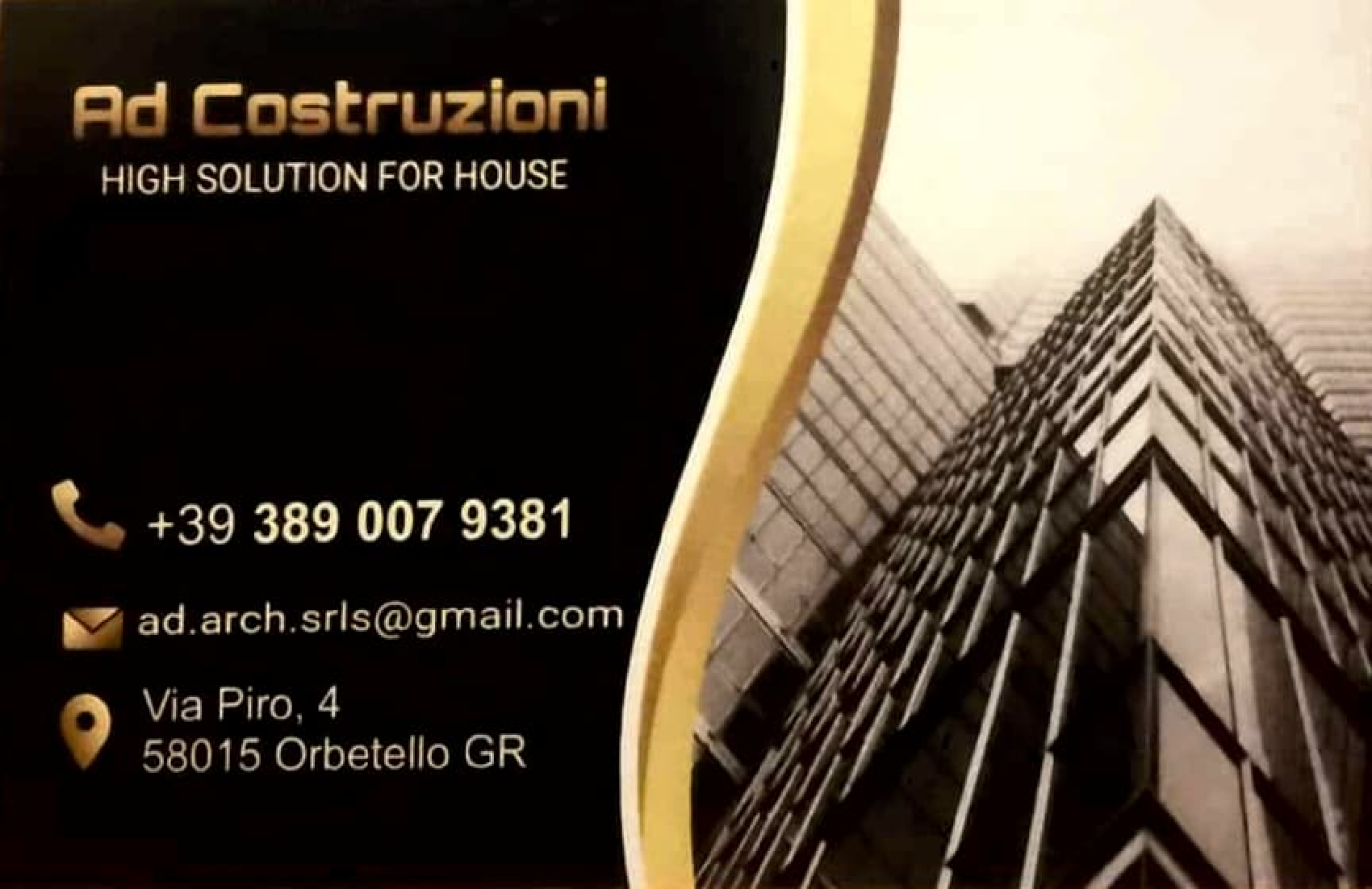 Ad Costruzioni e restauri – via Piro 4, 58015 Orbetello (sede operativa)