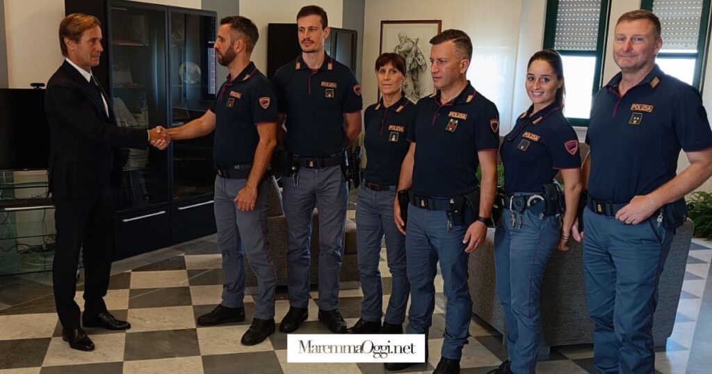 GROSSETO. Il questore di Grosseto Antonio Mannoni ha voluto congratularsi personalmente con gli agenti delle volanti per la grande professionalità con la quale hanno gestito un intervento di polizia particolarmente delicato effettuato nei confronti di un uomo in forte stato di alterazione psico-fisica, disarmandolo da un palo della segnaletica stradale che brandiva come un’arma.