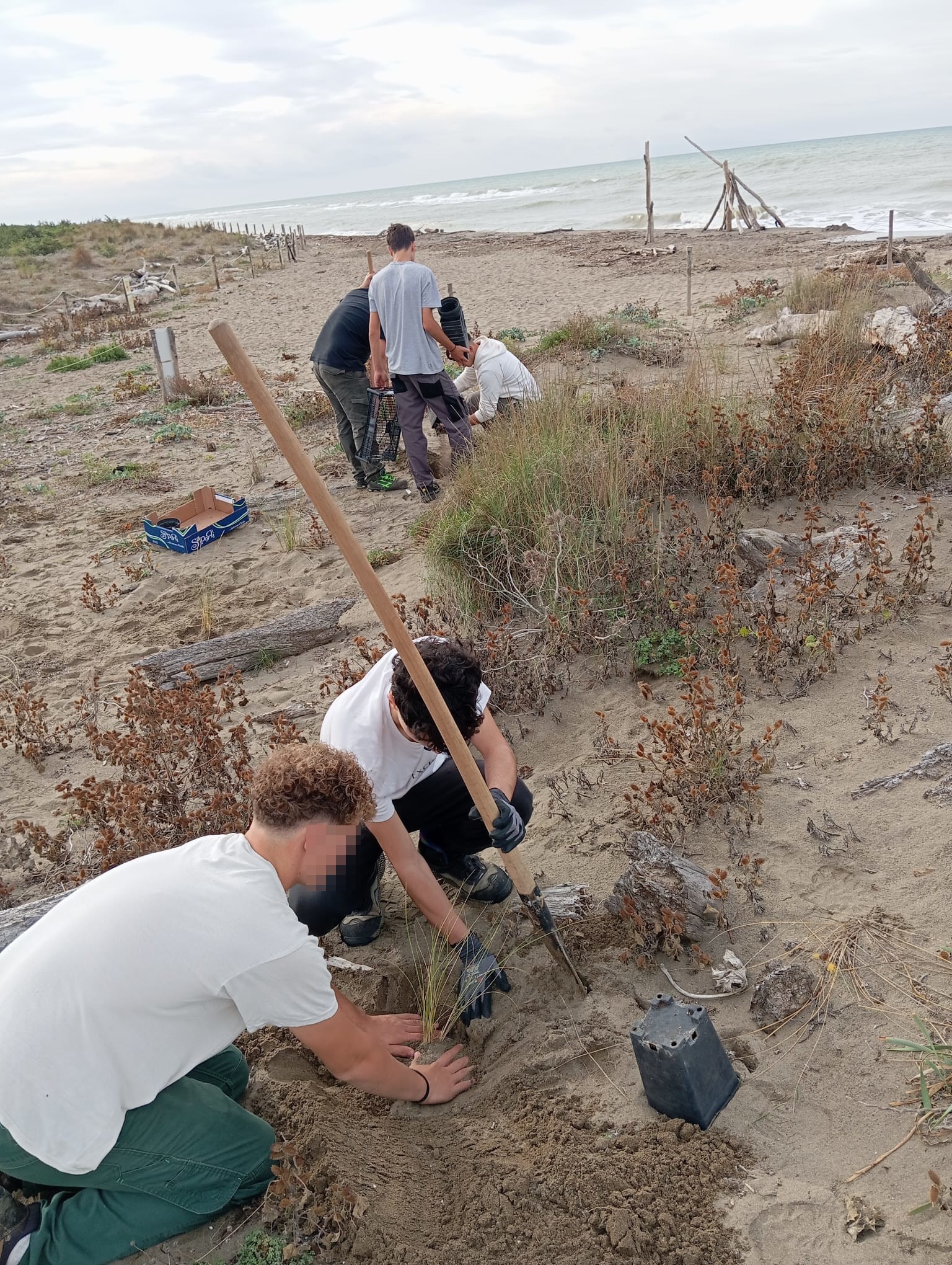 Oltre venti studenti del tecnico agrario hanno partecipato alla mattinata di lavoro, contribuendo alla messa a dimora di 200 nuove piante, destinate a rinforzare l’ecosistema della duna costiera.