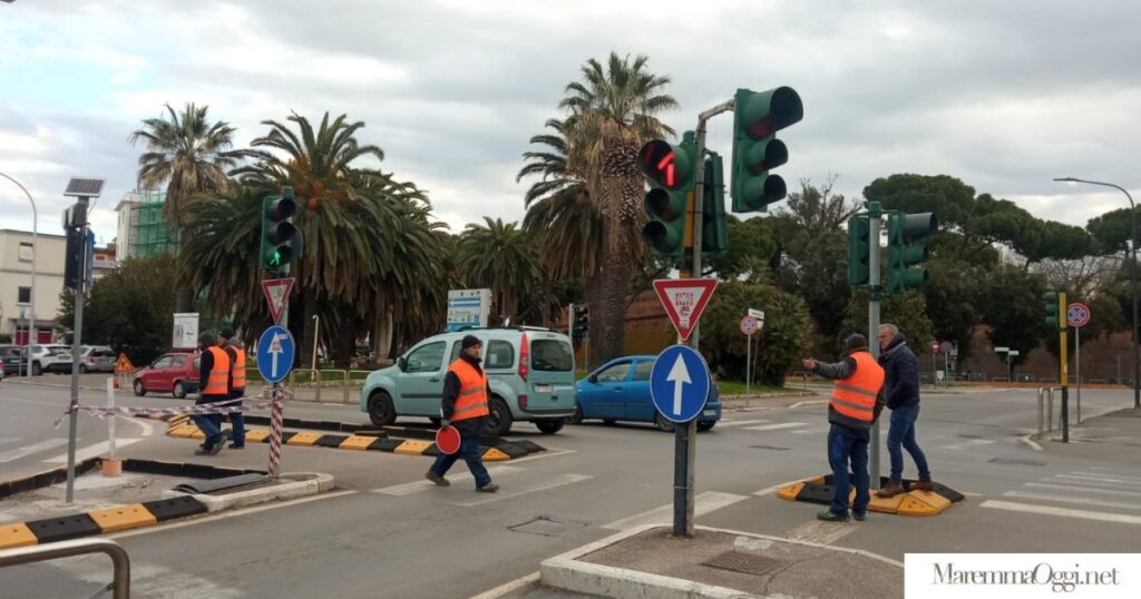 GROSSETO. In corrispondenza del semaforo del ponte Stadio, sono in corso i lavori per l’installazione di sensori per monitorare il traffico su questo punto nevralgico della città.