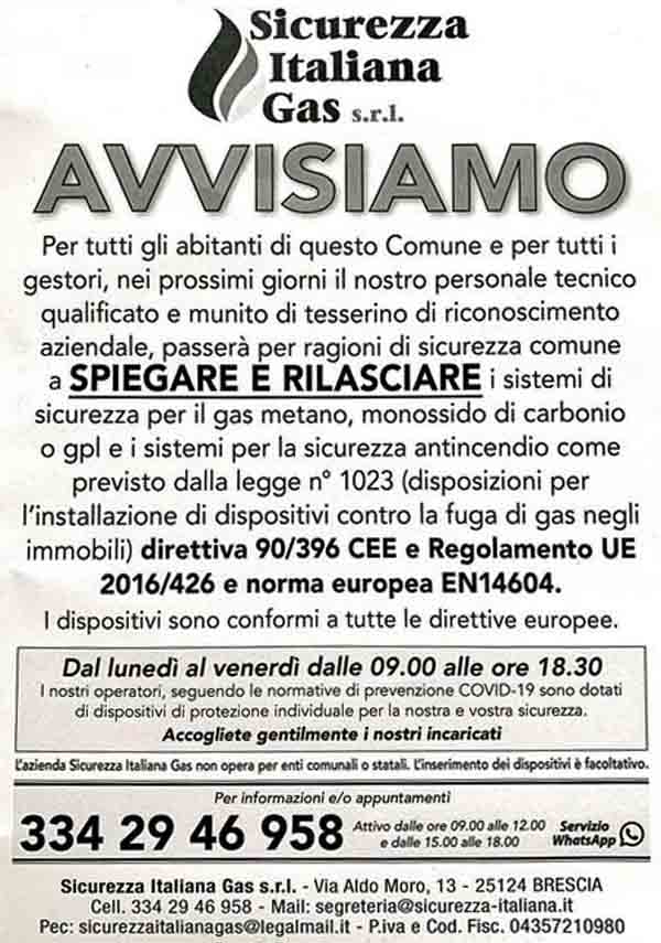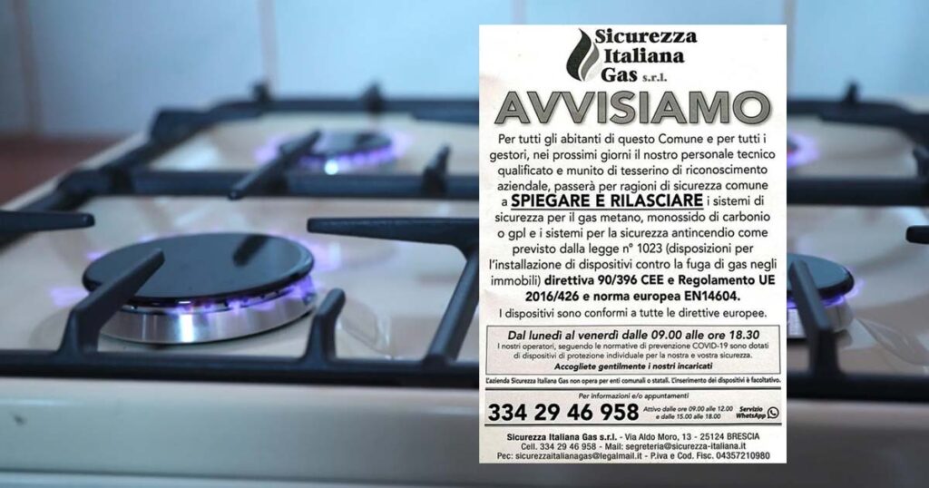 Ma, in carattere più piccolo, c’è la frase più importante di tutte: «L’azienda Sicurezza Italiana Gas non opera per enti comunali o statali. L’inserimento dei dispositivi è facoltativo».