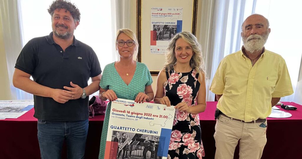 GROSSETO. Giovedì 16 giugno 2022, alle ore 21, apre la rassegna di concerti del progetto Attraverso i Suoni con l’esibizione del Quartetto Cherubini, uno dei gruppi vincitori, che si esibirà presso il Teatro degli Industri di Grosseto.