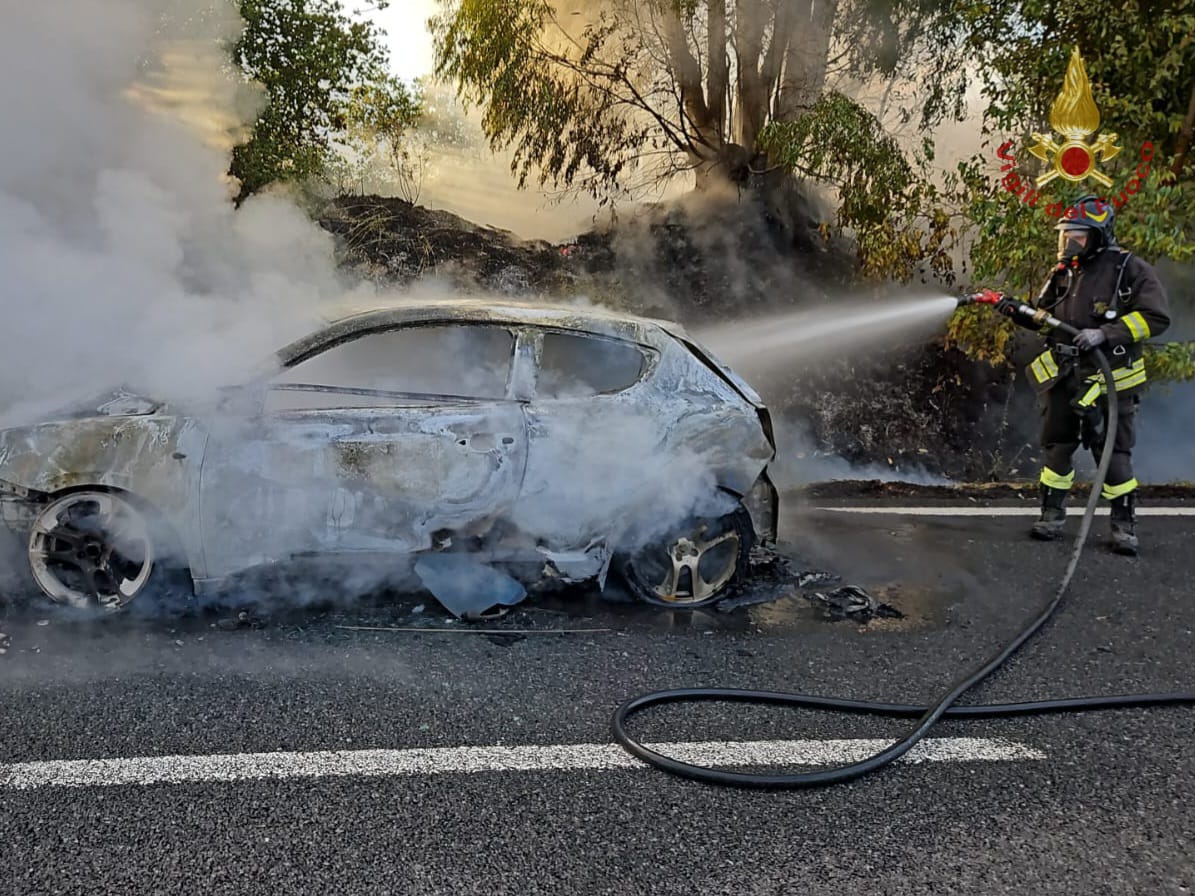 Quando i vigili del fuoco del comando di Grosseto sono arrivati, i due giovani erano già fuori dall’auto, avvolta dalle fiamme.
