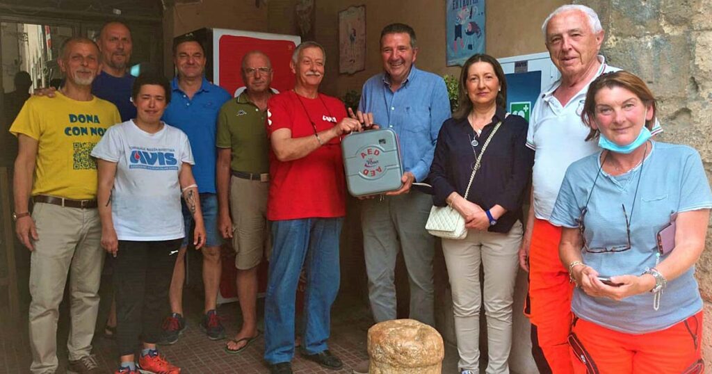 La consegna del defibrillatore è avvenuta il 26 maggio, in piazza Matteotti, alla presenza dell’assessore Ivan Terrosi in rappresentanza del Comune, del presidente di Avis Comunale Roberto Cecchini accompagnato dal vicepresidente Francesco Capponi e dai consiglieri Bruno Tarquini, Fabio Picci, Maurizio Picci e Silvia Varriale, dai consiglieri della Misericordia Massa Marittima Silvia Boni e Alessandro Giuliani accompagnati dai loro collaboratori Simonetta Galeotti e Gianfranco Ciampelli.