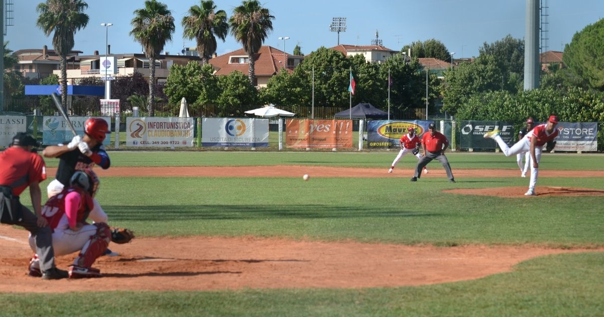 BIG-MAT BSC GROSSETO: 7 Federico Giordani (3/4, 1rbi), 2 Beau Giuseppe Maggi (0/1, 9 Matteo Oldano 0/1), 8 Ericson Neptali Leonora (1/3, 3rbi), 6 Mattia Mercuri (1/3), 4 Andrea Sellaroli (0/4), 9-2 Niccolò Cinelli (0/2), 3 Diego Luciani (2/3), 5 Francesco Tiberi (1/1, ph-5 Niccolò Funzione 0/1).