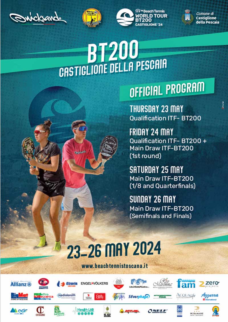 CASTIGLIONE DELLA PESCAIA. Inizia nel piazzale Maristella il torneo internazionale di beach tennis, un BT200 organizzato da Beach Tennis Toscana Event, oggi (giovedì 23) e domani (venerdì 24), sono in programma le qualificazioni. Il main draw inizia già venerdì 24 e prosegue sabato 25, domenica 26 ci sono le finali.