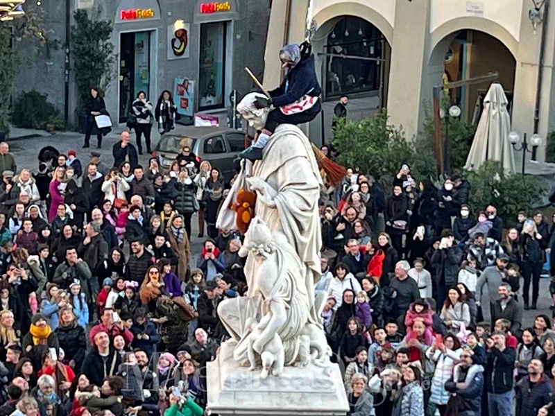 E non è mancato il fuori programma, con la Befana che, scendendo da palazzo Aldobrandeschi, si è messa a cavalcioni della statua di Canapone, ripresa da centinaia di cellulari e con i bambini impazziti di gioia.