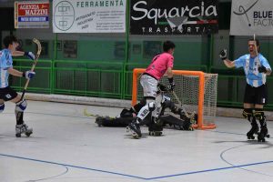 Il Castiglione sembra tramortito, incapace di venire a capo della difesa anche a zona dei viareggini. Il portiere bianconero Torre sembra insuperabile e va a parare tutti i tiri di Brunelli e compagni. Inevitabile il tris del Cgc. Il contropiede fulminante spacca in due la difesa di casa, con Saitta costretto a uscire dai pali: il tiro di Lombardi è fermato dal pattino di Buralli sulla linea e dal dischetto lo stesso Lombardi con un preciso rasoterra fa secco il portiere. 3-0 e non sembra proprio esserci partita.