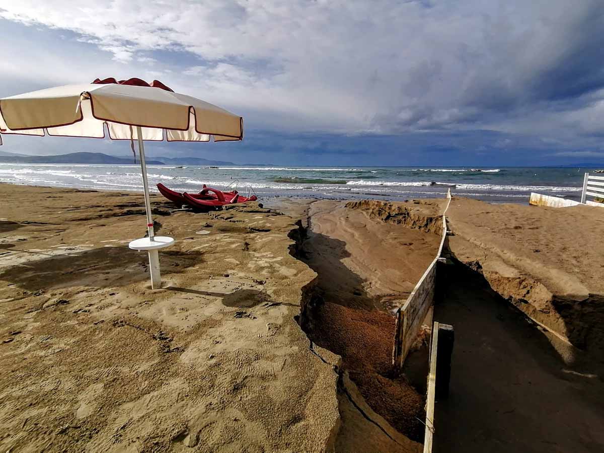L’acqua ha raggiunto il mare, tagliando la spiaggia come un coltello tiepido nel burro. Si sono formati veri e propri fiumi.