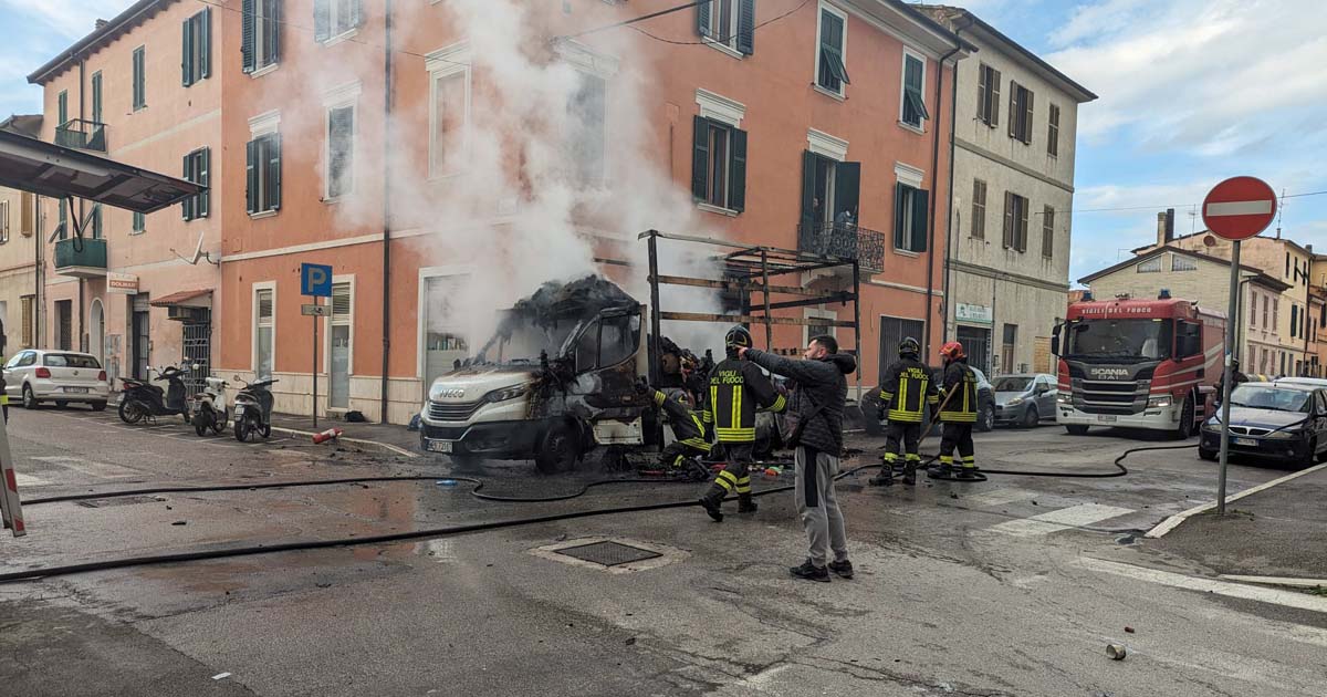 GROSSETO. Momenti di grande paura, a due passi dal centro storico di Grosseto, per un furgone che ha preso fuoco.