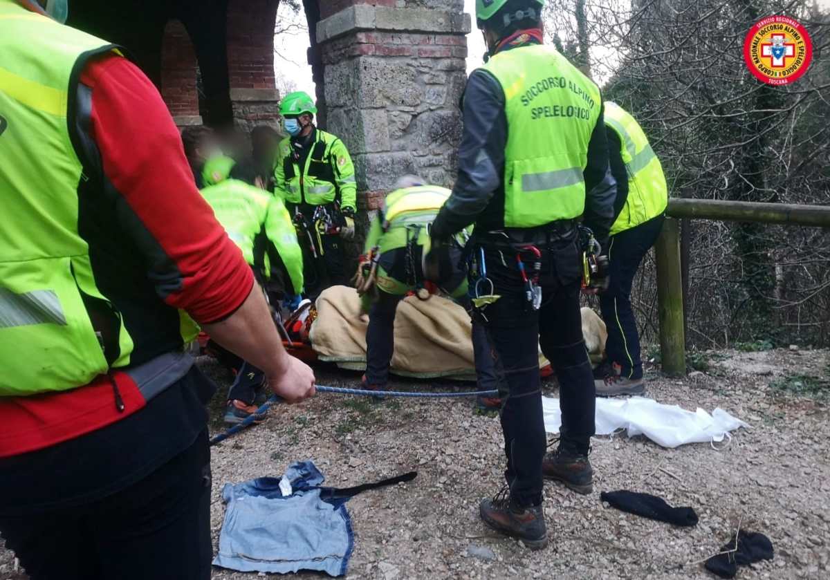 Nella caduta ha riportato diversi traumi: è stato stabilizzato e accompagnato all’ambulanza, poi è partito alla volte delle Scotte di Siena dov’è stato ricoverato con un politrauma.