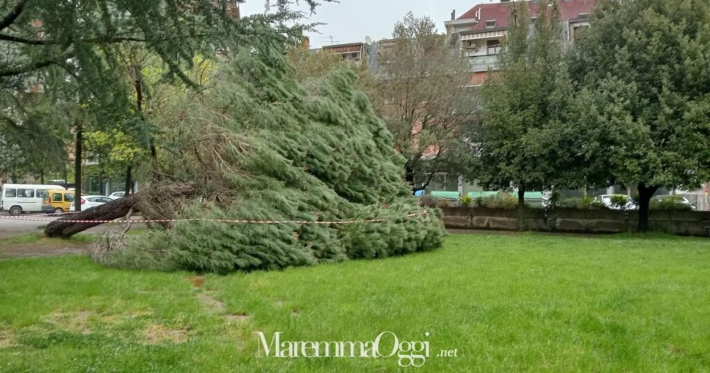 ARCIDOSSO. Un grande albero è crollato nella notte tra il 14 e 15 aprile nel parco Donatori del sangue ad Arcidosso.