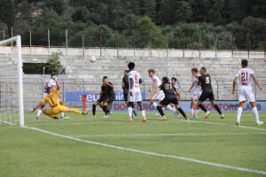 Al 25’ il vantaggio maremmano. Marcheggiani riceve un bel pallone sul vertice dell’area piccola, controlla e batte con un destro implacabile sul secondo palo Trombini, realizzando il gol dell’1-0.