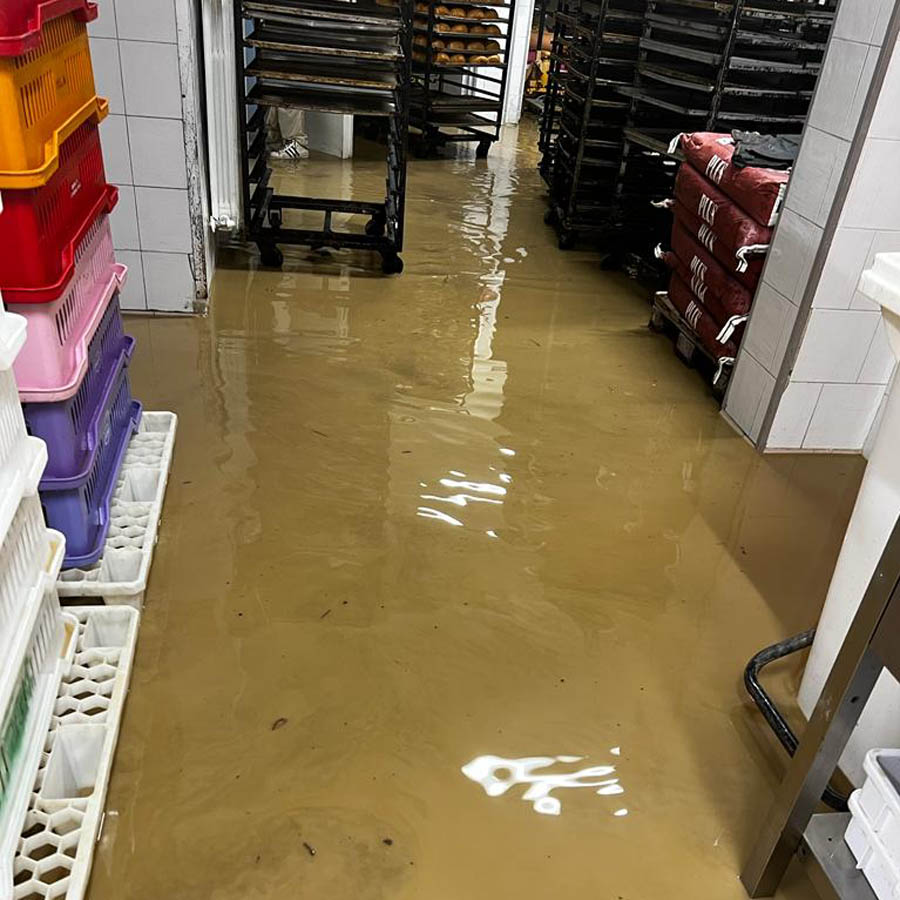 BACCINELLO. L’acqua è entrata nei locali del panificio di Baccinello. I danni sono molto ingenti.