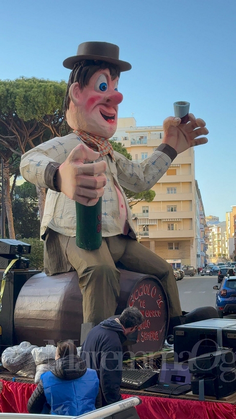 «La testa è stata modellata con un calco in gesso che ho realizzato personalmente diversi anni fa. È tutto in cartapesta, realizzato con la tecnica della ‘carta a calco’ tipicamente viareggina. Quest’anno ho voluto puntare sulle dimensioni, finalmente importanti, rappresentando Cicciolo in maniera classica e per intero», racconta Mazzoni con soddisfazione.