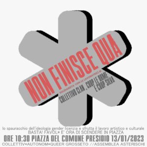 Ricordando quanto successo nei giorni passati, e da come tutto sembrasse partito dalla questione dell’asterisco, il collettivo invita tutti alla mobilitazione organizzata venerdì 13 gennaio alle 10.30 in piazza del Comune, giorno in cui si riunisce il consiglio comunale.