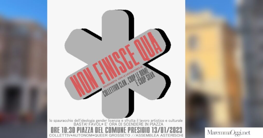 GROSSETO. Il caso asterisco continua a generare polemica. Ora si espone anche il collettivo Queer Grosseto. Il gruppo si schiera sostegno della cooperativa Clan, alla quale non è stato rinnovato il contratto di convenzione con le strutture comunali.