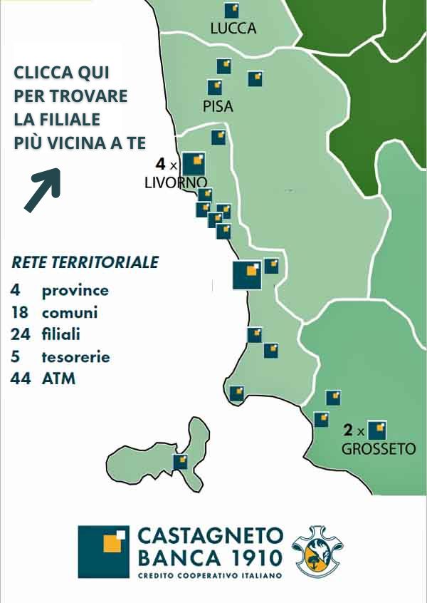 Ricordiamo che Castagneto Banca 1910 impiega circa 190 dipendenti dislocati, oltre che nella sede centrale, su 24 filiali – delle quali l’ultima aperta a dicembre 2023 nel comune di Cascina – situate in ben 4 province e rispettivi capoluoghi (Lucca, Pisa, Livorno e Grosseto) un dato che poche Bcc possono vantare.