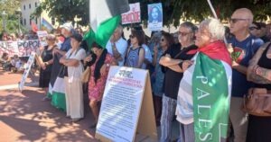 I civili a bordo della missione umanitaria per la consegna via mare di alimenti e farmaci a Gaza, composta da volontari di 44 nazioni, rischiano l’attacco militare, l’arresto e la detenzione in carceri di massima sicurezza, ed è proprio per questo che sono stati fatti i flash mob e sit-in.