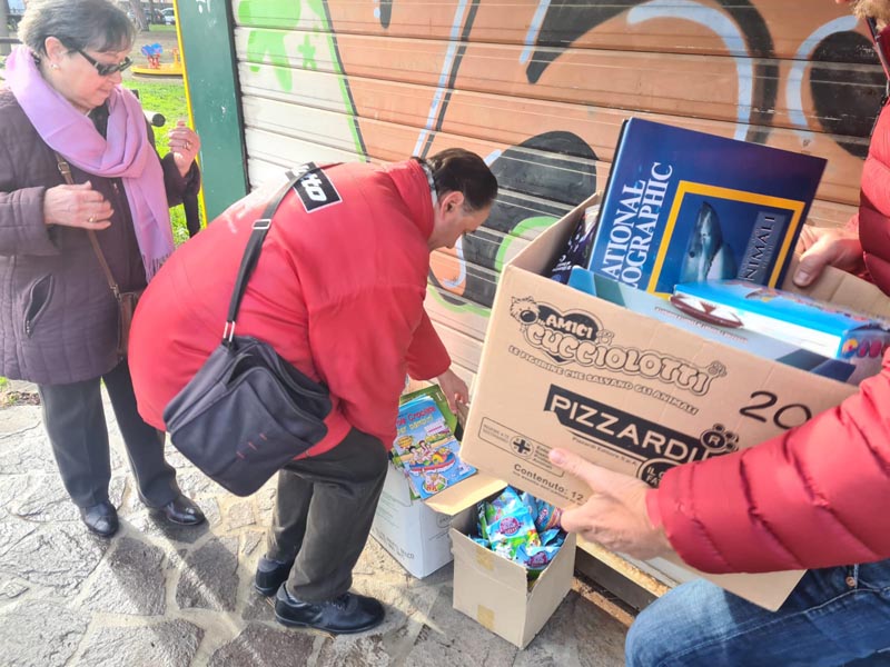 «Quando abbiamo svuotato l’edicola – afferma la signora Maria Rosaria –, sono rimasti in giacenza molti articoli, tra cui tante cose per l’infanzia, come libri di storie, libri illustrati sugli animali, fumetti, giochi per colorare e buste con la sorpresa; in parte le abbiamo regalate ai bambini che vengono a giocare nel parco accanto a noi e il resto abbiamo deciso di donarle ai piccoli pazienti del pronto soccorso pediatrico».