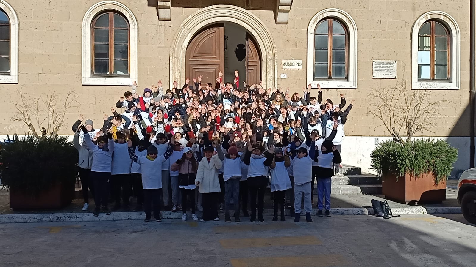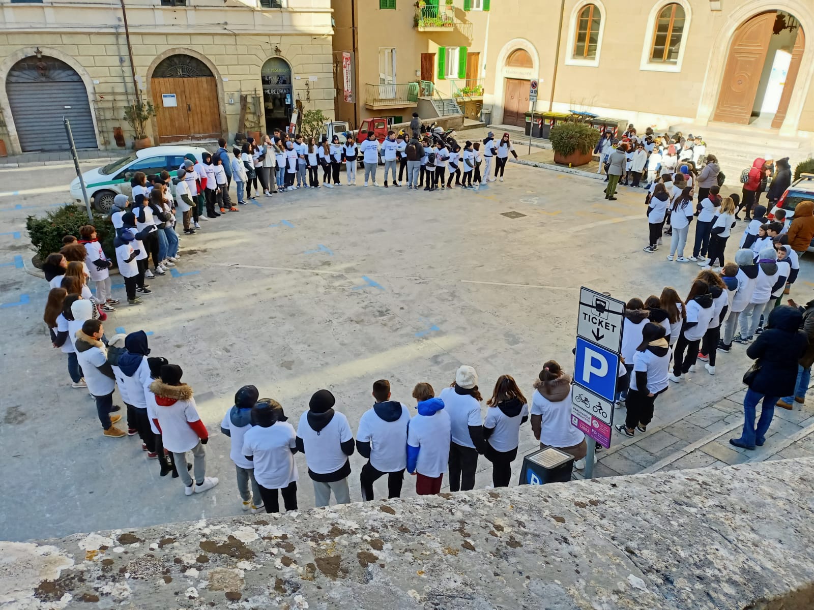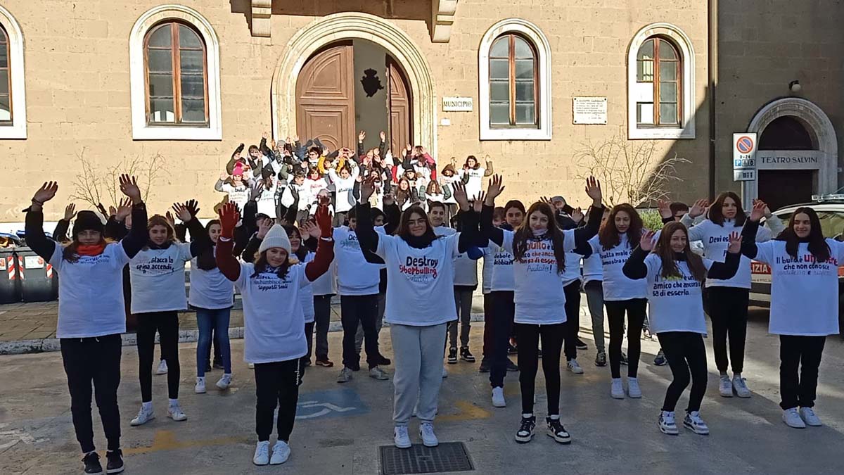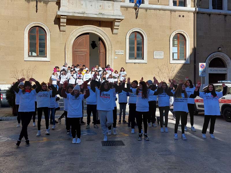 Intorno alle 11, il flash mob, le mani al cielo e le coreografie, per ricordare la giornata mondiale contro il bullismo e il cyberbullismo, che ricorre, appunto, il 7 febbraio.