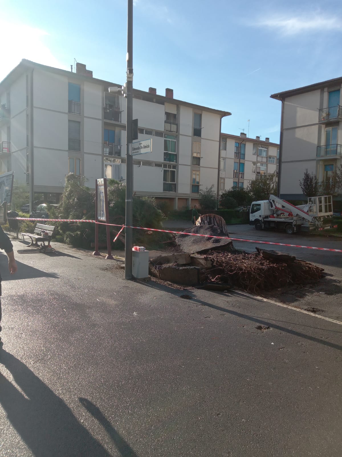In tarda mattinata, l’albero è stato portato via.