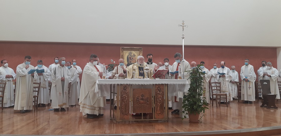 Prima del termine della celebrazione, il Vescovo ha benedetto una brocca di olio, offerto per alimentare la lampada votiva che arde dinanzi all’immagine della Madonna delle Grazie patrona della Toscana. Una brocca consegnata a don Luca Bernardo Giustarini, maremmano doc, priore sui iuris di Montenero.