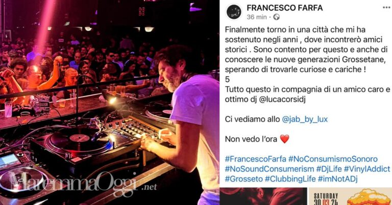 Dj Farfa: «Sono emozionato di tornare a Grosseto»
