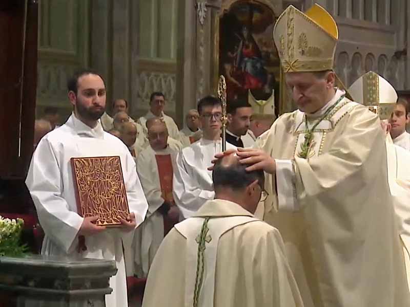 Poi in ginocchio ha ricevuto l’imposizione delle mani da parte dei vescovi prima della preghiera di ordinazione, al termine della quale ha ricevuto l’unione del capo con il sacro crisma, quindi è stato rivestito dell’anello, della mitria e del pastorale.