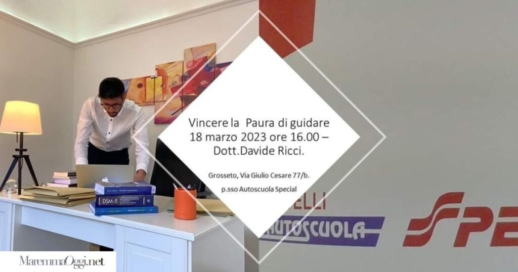 Sabato 18 marzo, nella sala fresca di ristrutturazione della scuola guida, alle 16, il dottor Davide Ricci, uno dei pochi psicologi ad aver lavorato a lungo come istruttore di guida, spiegherà come vincere la paura di guidare.
