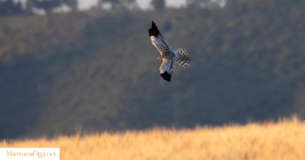 Il bellissimo rapace bianco e nero che arriva dall’Africa per nidificare in Maremma nei campi di fieno e cereali ha fatto già la sua comparsa.