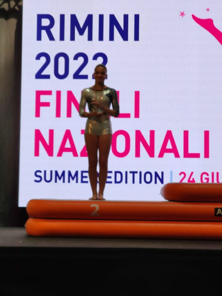 RIMINI. Da Casal di Pari, nel comune di Civitella Paganico, al gradino più alto del podio nella ginnastica artistica nazionale. È la favola della giovanissima Eva Pecciarini, 12 anni, medaglia d’oro alle nazionali Fgi – serie D che si sono svolte a Rimini dal 24 giugno al 3 luglio. Cresciuta sotto l’ala della tecnica Bianca Macarri dall’età di circa 6 anni, Eva ha coronato un sogno.