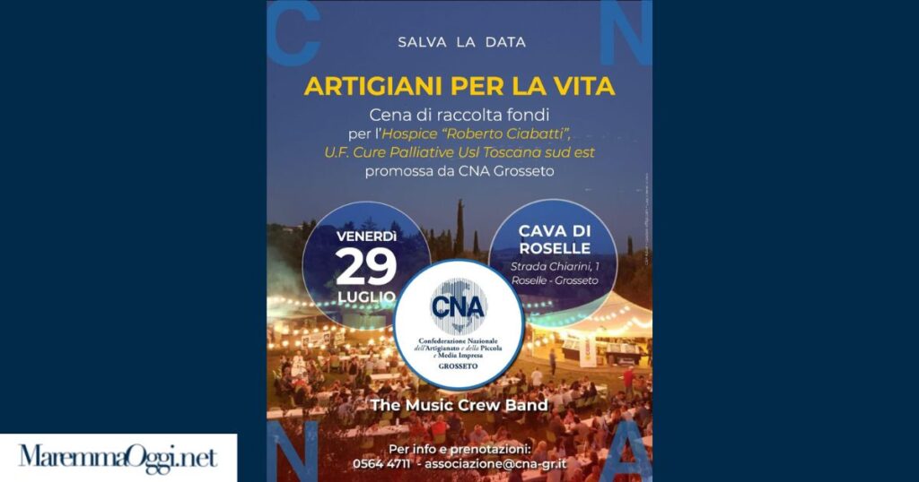 GROSSETO. Sarà una grande festa, per un progetto importante. Artigiani per la vita sarà una cena che coglierà l'occasione di raccogliere fondi per l'Hospice "Roberto Ciabatti", u.f. cure palliative dell'Usl … Leggi tutto Artigiani per la vita: la cena alla Cava