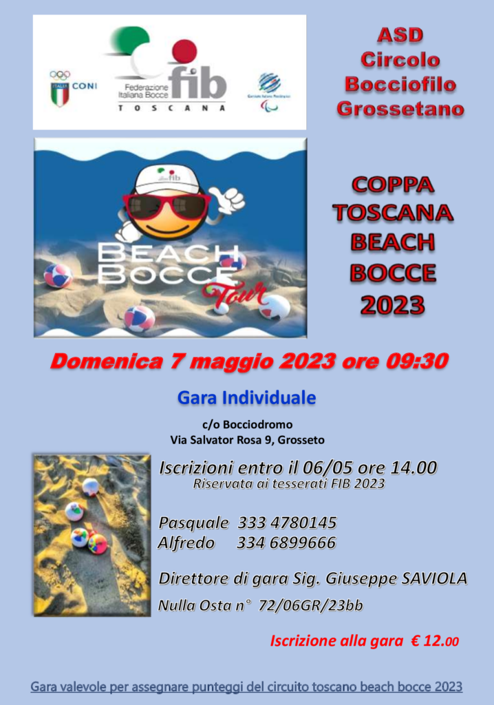La gara è valevole per assegnare punteggi del circuito toscano beach bocce 2023.