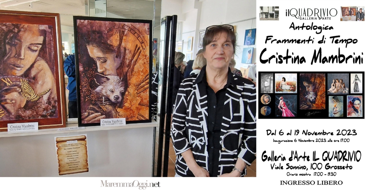GROSSETO. Una mostra antologica dedicata alla donna. Il titolo “Frammenti di tempo“. L’artista è Cristina Mambrini, che dal 6 al 19 novembre accompagna le sue opere alla galleria il Quadrivio, in viale Sonnino 100.