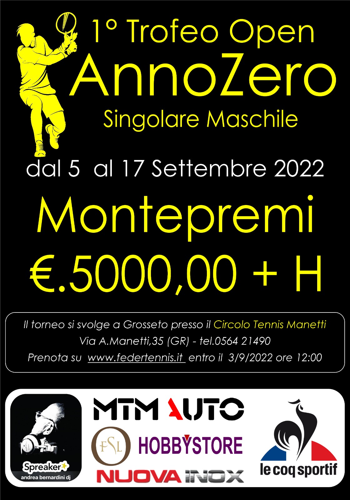 GROSSETO. AnnoZero in collaborazione con Il Circolo tennis Manetti organizza a Grosseto l’evento tennistico dell’anno. Il “torneo Open singolare maschile”, con un montepremi di euro 5000.