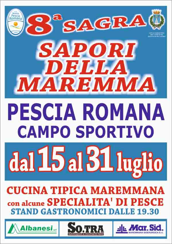 PESCIA ROMANA. Appena al di là del confine con il Lazio, torna la sagra dei sapori di Maremma, arrivata alla sua ottava edizione.
