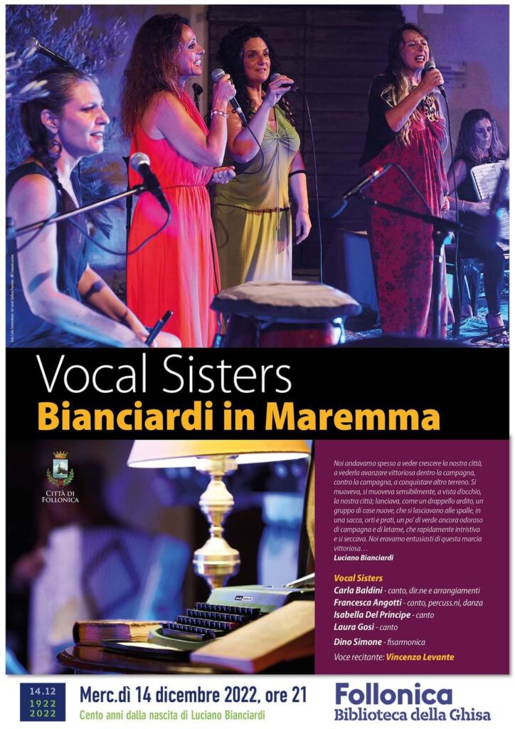 FOLLONICA. Il 14 dicembre alle 21, in occasione dei cent’anni dalla nascita di Luciano Bianciardi, la Biblioteca della Ghisa di Follonica organizza uno spettacolo di musica e teatro delle Vocal Sisters con la voce narrante di Vincenzo Levante, dal titolo “Bianciardi in Maremma”.