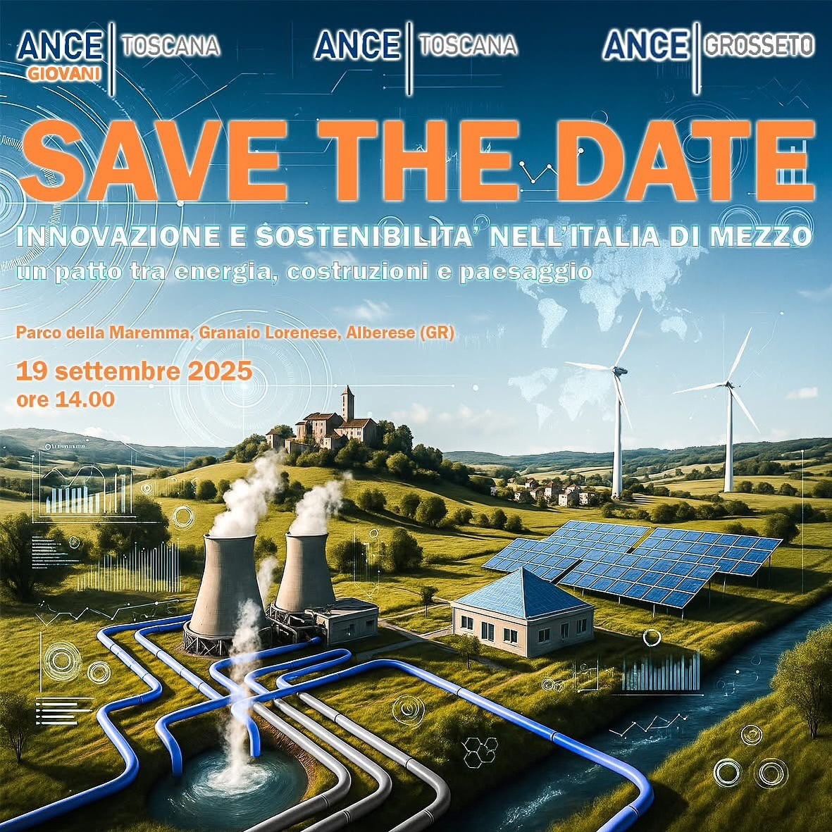 ALBERESE. Il 19 settembre dalle 14 al Granaio Lorenese ad Alberese è in programma un convegno organizzato da Ance Toscana, Ance Grosseto, Ance giovani Toscana. Il centro del convegno è l’innovazione, la sostenibilità e il futuro dei territori, un patto tra energia, costruzioni e paesaggio. Gli ospiti parleranno anche di acqua, geotermia ed edilizia.