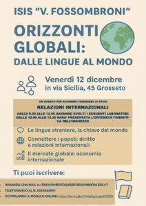Tra gli appuntamenti più attesi c’è “Orizzonti globali: dalle lingue al mondo”, dedicato all’indirizzo Relazioni internazionali per il marketing: un percorso che unisce formazione economico-giuridica e competenze linguistiche avanzate. L’incontro è in programma venerdì 12 dicembre dalle 9 alle 12, con spazio finale anche per i genitori dalle 12 alle 12.30.