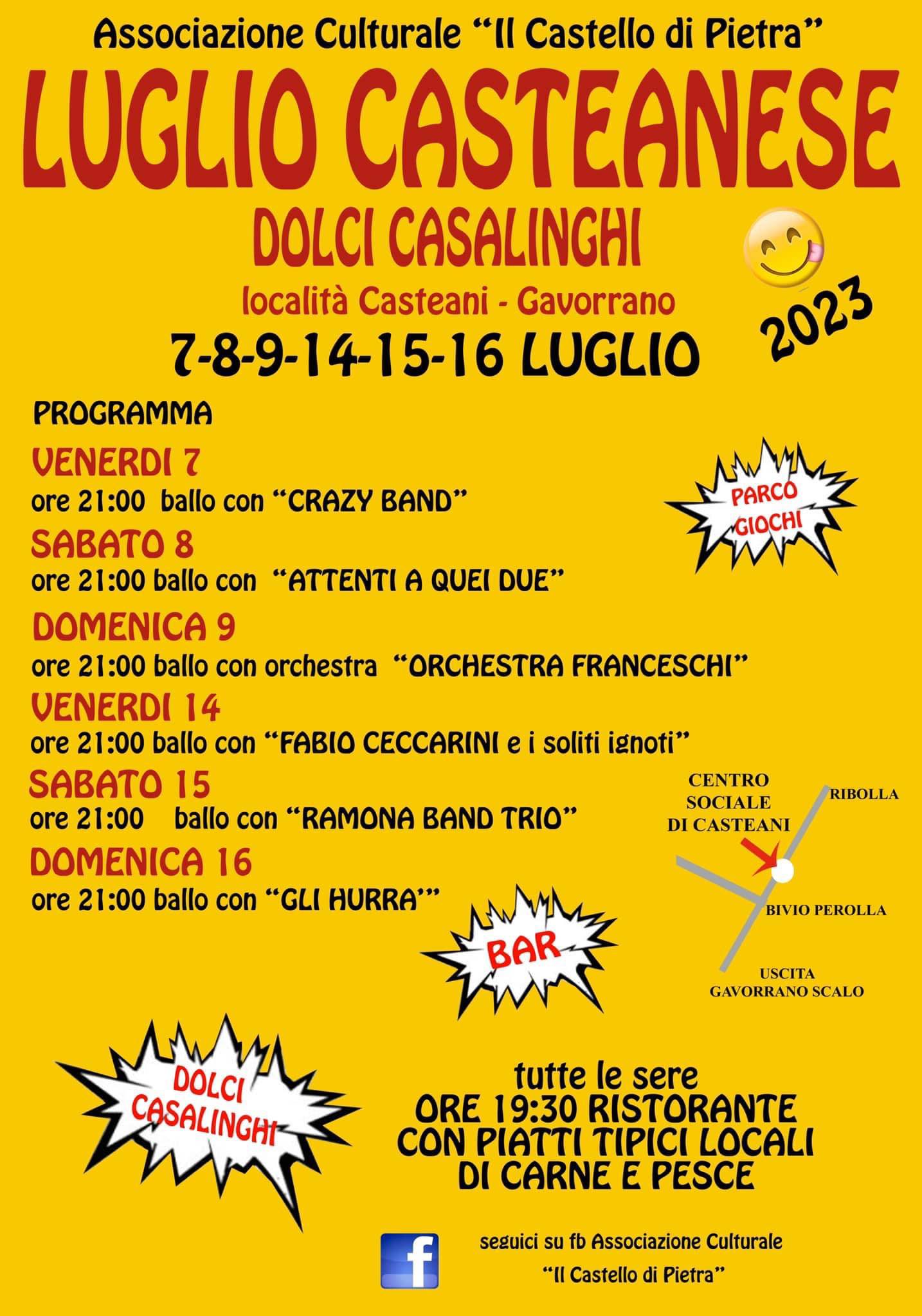 GAVORRANO. Torna il luglio casteanese con musica, sapori della tradizione e tanto divertimento. I giorni da segnare in calendario sono 7,8,9 luglio, e 14, 15 e 16.
