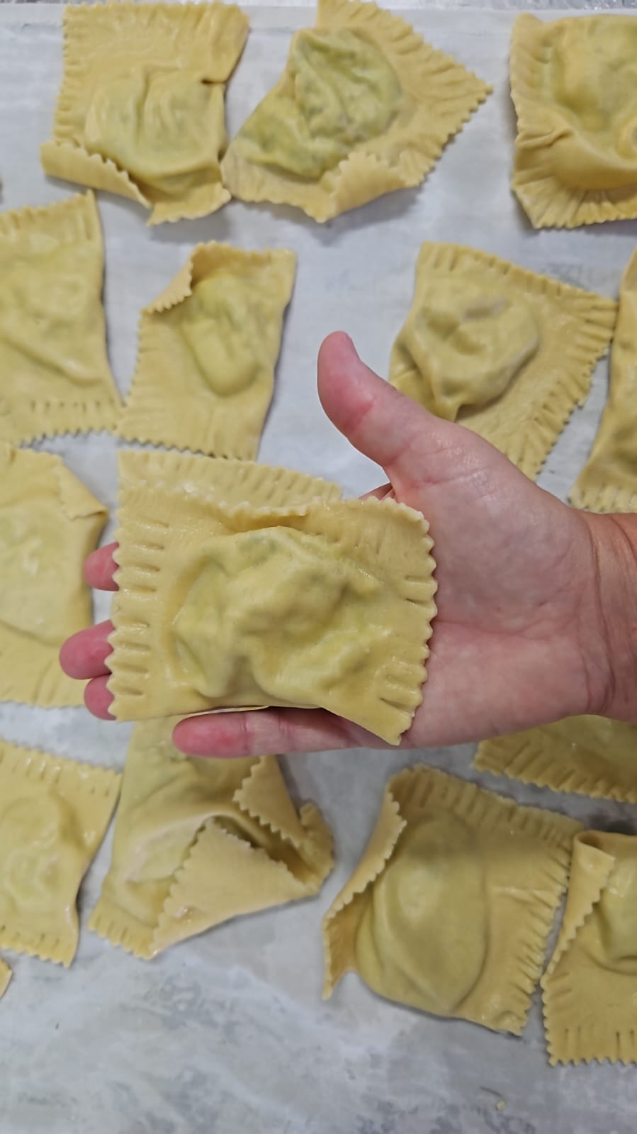 I cuochi e le cuoche del Grilli mettono letteralmente le mani in pasta per preparare centinaia e centinaia di tortelli e maccheroni, tutti rigorosamente fatti a mano.